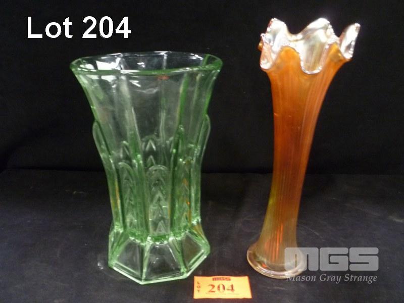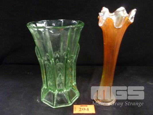 URANIUM GLASS VASE & MARIGOLD CARNIVAL GLASS VASE