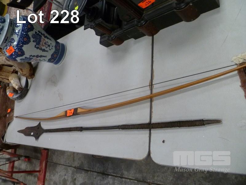 HAND FORGED AFRICAN LEAF SPEAR & CEREMONIAL BOW