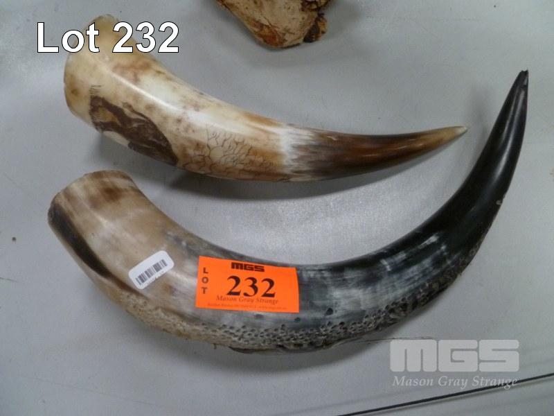 2 x CARVED AFRICAN CATTLE HORNS