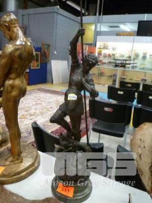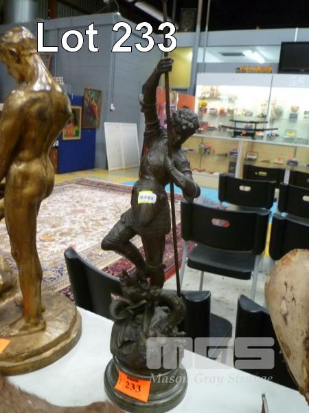 BRONZE FIGURE OF KNIGHT & DRAGON, MOUNTED ON MARBLE BASE