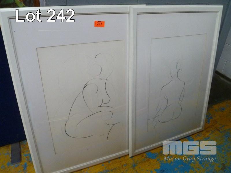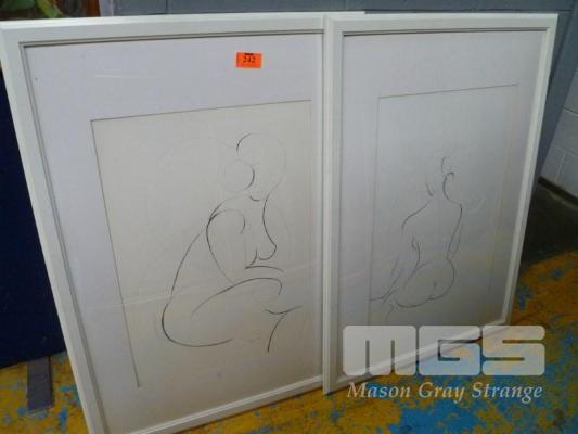 2 X CONTEMPORARY FRAMED LADY SKETCHES