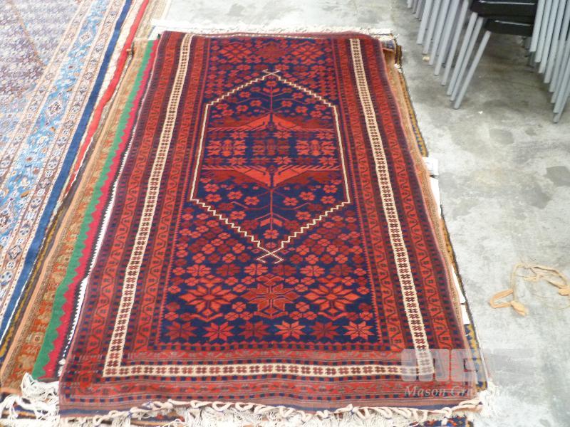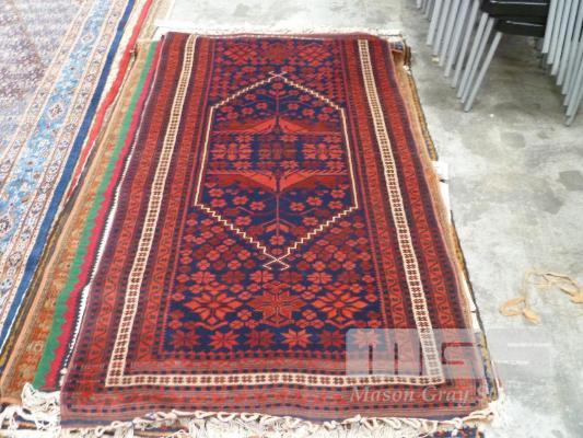 ORIENTAL WOOL HAND KNOTTED RUG, 2 x 1.1m (APPROX)