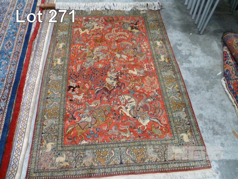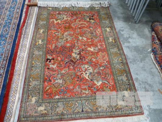 SILK ORIENTAL RUG, MOUNTED FOR WALL HANGING, 1.8 x 1.1m (APPROX)