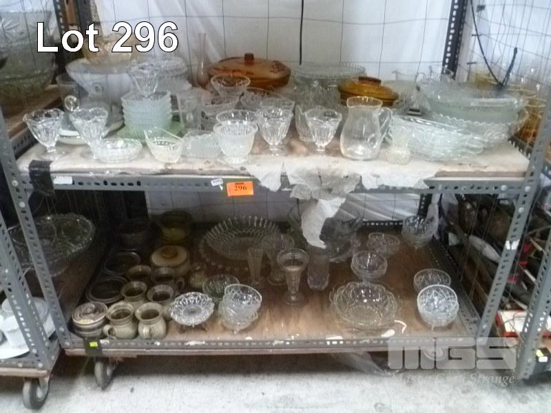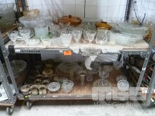 ASSORTED CRYSTAL, GLASSWARE, POTTERY ETC (2 x BAYS)