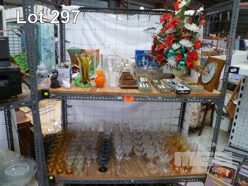 ASSORTED CRYSTAL, GLASSWARE, HOMEWARES ETC (2 x BAYS)
