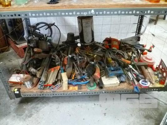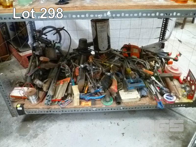 ASSORTED TOOLS, MIXED HAND TOOLS, JIGSAW, SANDER, BLOW LAMP, LATHE STEADY (BAY LOT)