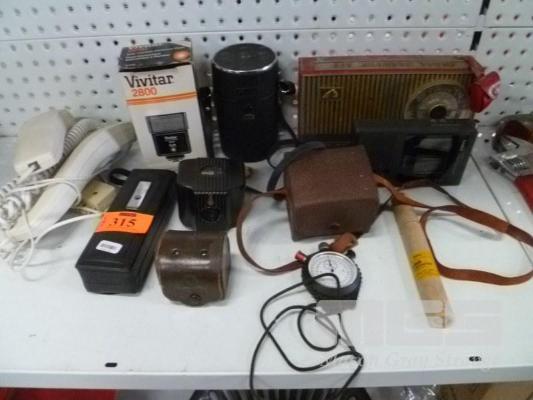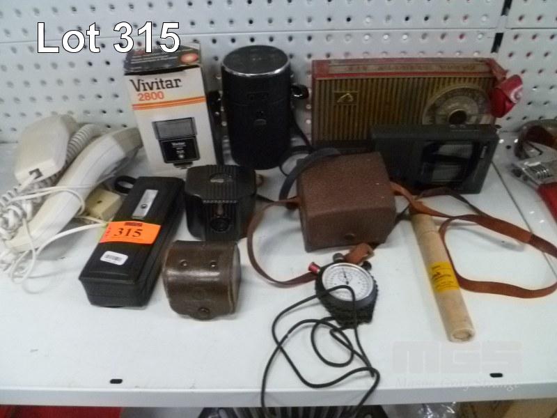 HMV TROPICANA RADIO, CASIO POCKET TV, KODAK FAHRENHEIT THERMOMETER, VIVITAR FLASH & LENS, 2 X BROWNIE 127 CAMERA'S, PETRIFINDER/LENS, ARGUS CINTAR CAMERA & LIGA STOP WATCH