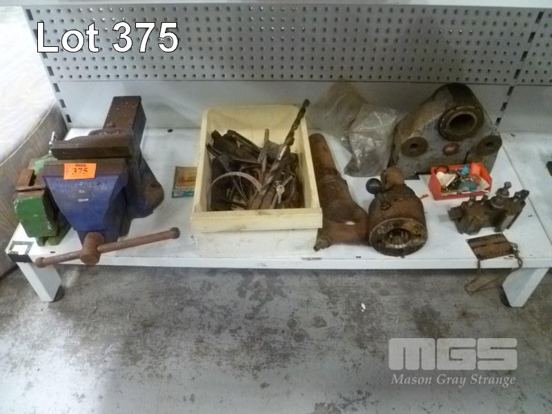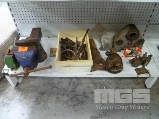 RECORD 6" BENCH VICE, DIRECTIONAL BENCH VICE, CHUCK, TOOLS ETC