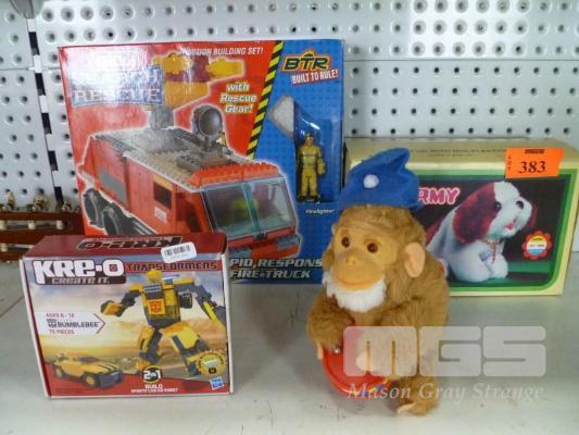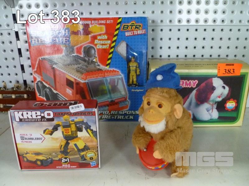 ASSORTED TOYS, WIND UP MONKEY, CHARMY, TONKA & HASBRO