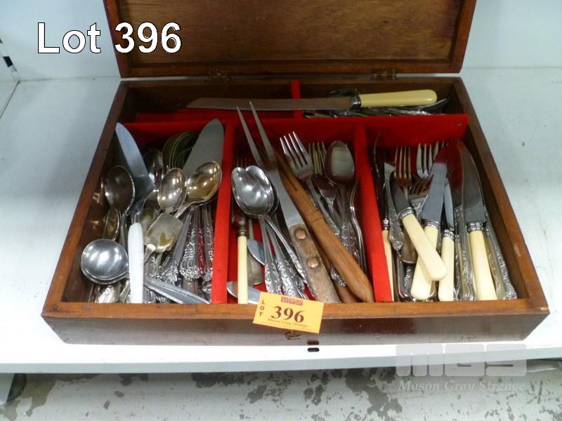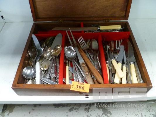 ASSORTED CUTLERY INC BONE HANDLED IN TIMBER CUTLERY CANTEEN