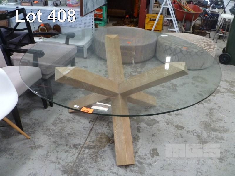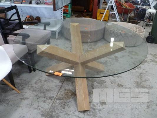 GLASS TOPPED CIRCULAR DINING TABLE WITH WHITEWASH OAK BASE, 1550mm (D)