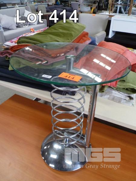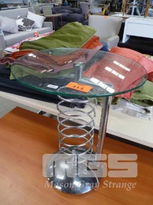 RETRO STYLE SIDE TABLE, ROUND GLASS TOP, CHROME BASE