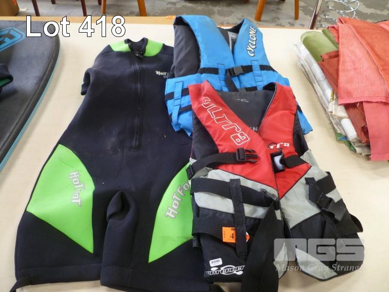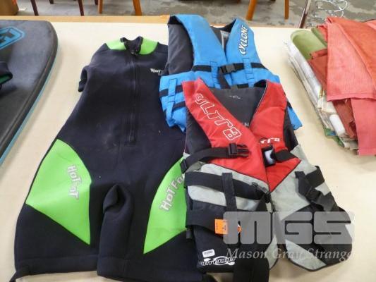 WATER SKI WETSUIT & 3 x LIFE JACKETS