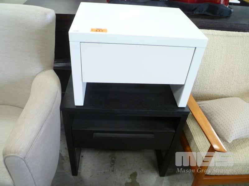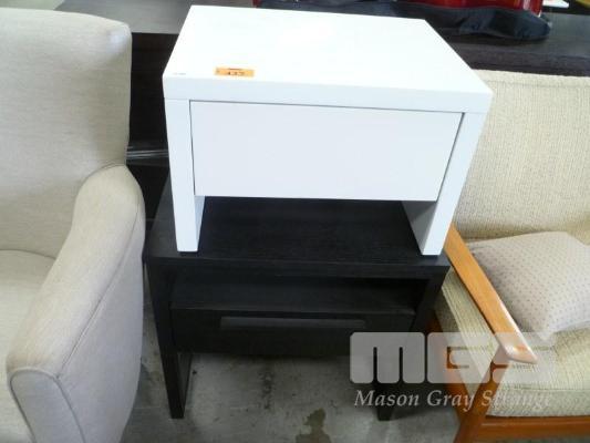 CHOCOLATE WOODGRAIN LAMINATE SINGLE DRAWER BEDSIDE CABINET & WHITE 2 PACK PAINTED BEDSIDE