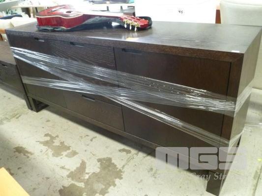 CHOCOLATE WOODGRAIN LAMINATE SIDEBOARD, 2 DOOR/3 DRAWER, 1800mm (W) x 450mm (D) x 800mm (H)