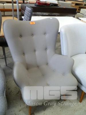 CHARCOAL FABRIC UPHOLSTERED FEATHERSTON STYLE WING BACKED ARMCHAIR