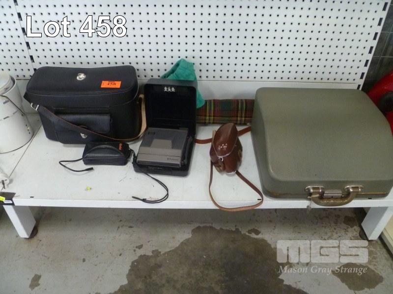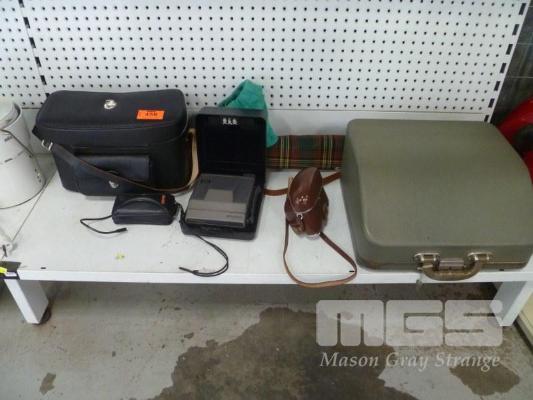 TYPEWRITER, POLAROID CAMERA, KODAK CAMERA, KODAK RETINA REFLEX CAMERA, BAG OF PHOTOGRAPHIC ACCESSORIES