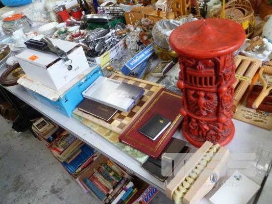 ASSORTED HOUSEHOLD ITEMS, FLATWARE, MEISSEN PORCELAIN, BAVARIAN TRIO'S, DUGENA WALL CLOCK