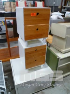 WHITE PAINTED LAMINATE/LOW LINE CABINET, 2 DRAWER & PAIR OF SIDE CABINETS, WHITE PAINTED, PINE FRONTED, 2 DRAWER