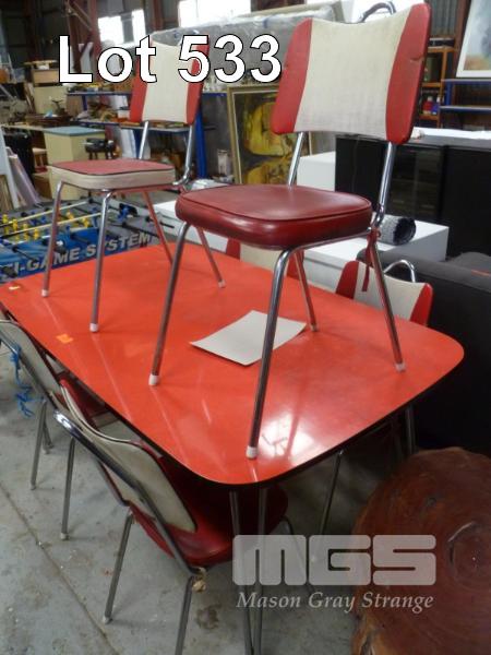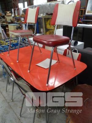 RED LAMINEX TABLE & 6 x RED & WHITE CHAIRS