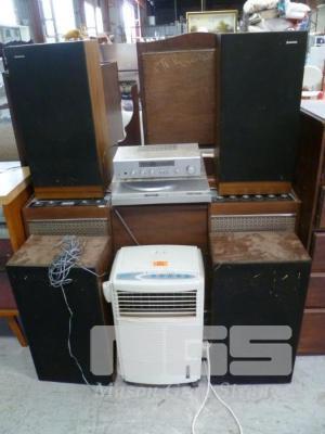 PHILIPS GLIDOMATIC STEREO, SANYO TURNTABLE WITH AMP & 2 x PAIRS UPRIGHT SPEAKERS