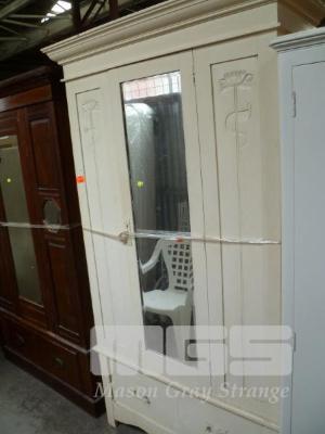 WHITE PAINTED TIMBER WARDROBE, SINGLE DRAWER/DOOR, CENTRE MIRROR