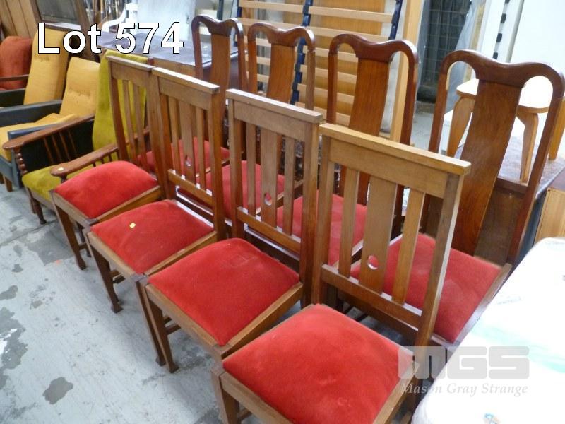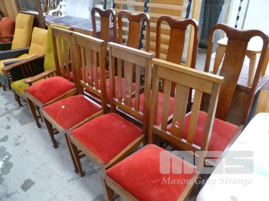 8 x RED VELVET BASE TIMBER DINING CHAIRS