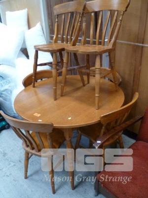 PINE 7 PIECE DINING SUITE, ROUND EXTENSION TABLE & 6 x CHAIRS