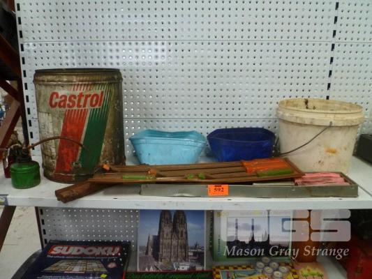 CASTROL OIL TIN, OIL CANS, TOOLS, PARTS ETC