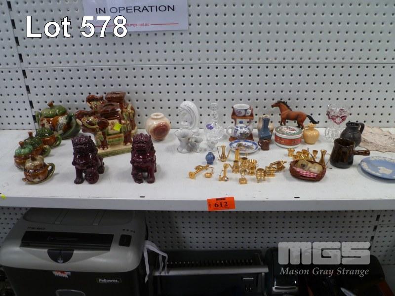 ASSORTED ORNAMENTS, BRASS MINIATURES, ETC