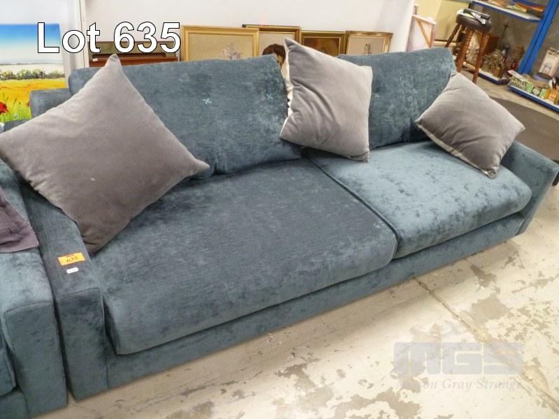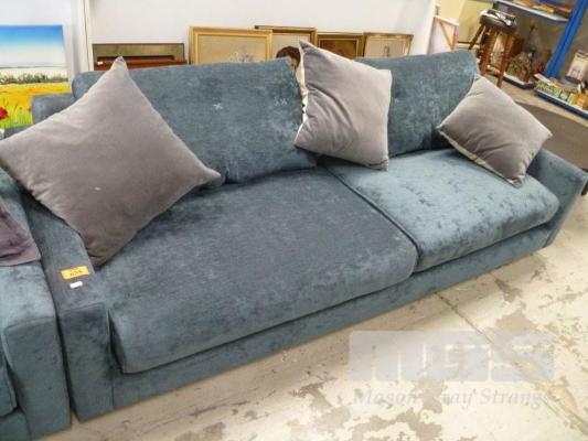 GREEN FABRIC UPHOLSTERED 3 SEATER SOFA, WITH LOOSE CUSHIONS