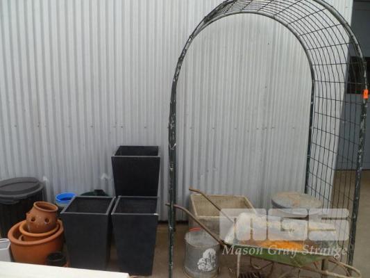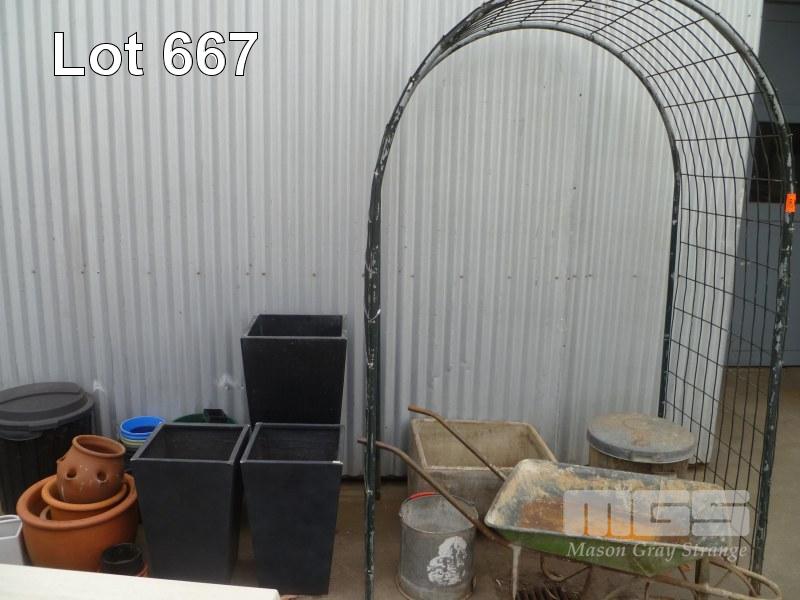 GARDEN ARCH, WHEELBARROW, GALV BINS, POTS & PLANTERS
