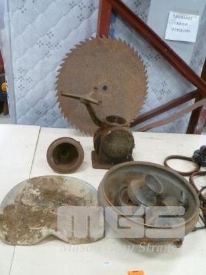 DIABLE CREAM SEPARATOR, CAST ALUMINUM TRACTOR SEAT & LARGE SAW BLADE