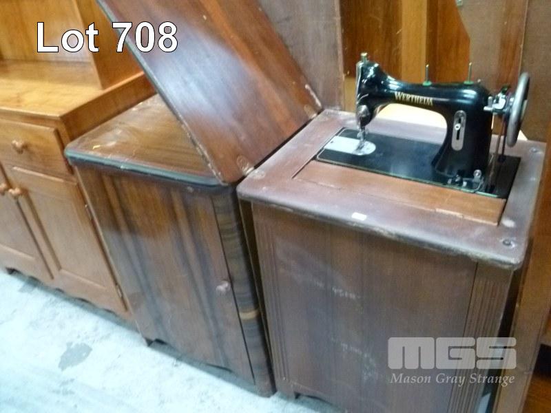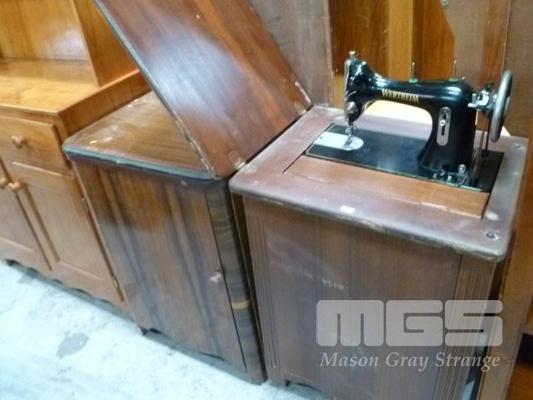 VINTAGE WERTHEIM SEWING MACHINE IN TIMBER SEWING CABINET & TIMBER SEWING CABINET