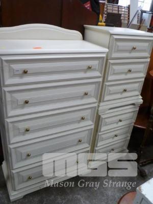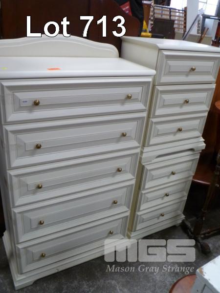 WHITE 3 DRAWER TALL BOY & 2 x 3 DRAWER BEDSIDE CABINETS