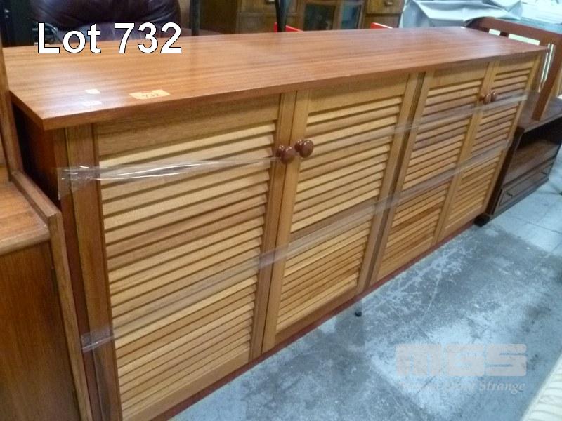 SIDE BOARD, 4 LOUVERED DOORS, TIMBER VENEER