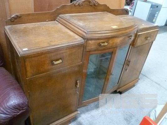 TIMBER VENEER ART DECO STYLE BUFFET, 3 DRAWER, 2 DOOR, 2 GLASS DOORS