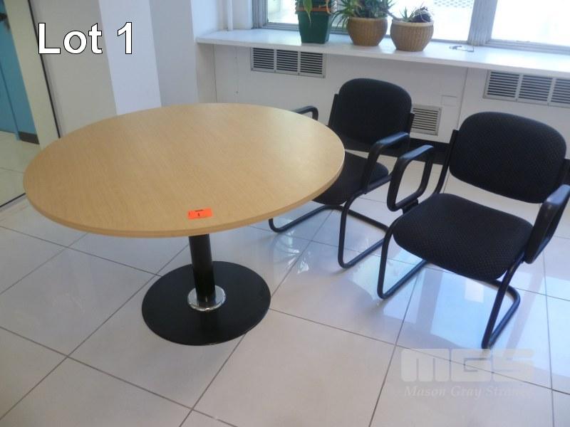 MEETING TABLE, YOUNG BEECH LAMINATE TOP, 120cm WITH 2 x VISITOR ARM CHARIS