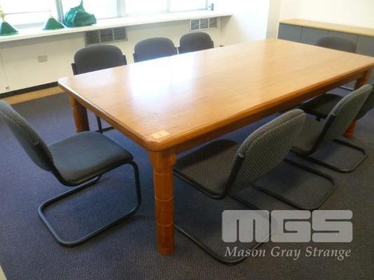 TABLE, SOLID TIMBER, 240 x 120cm WITH 8 x CHAIRS