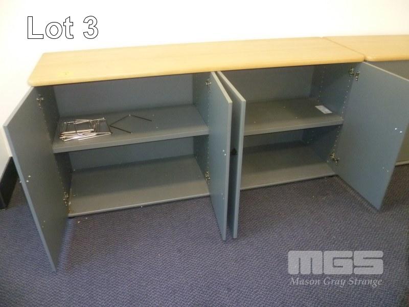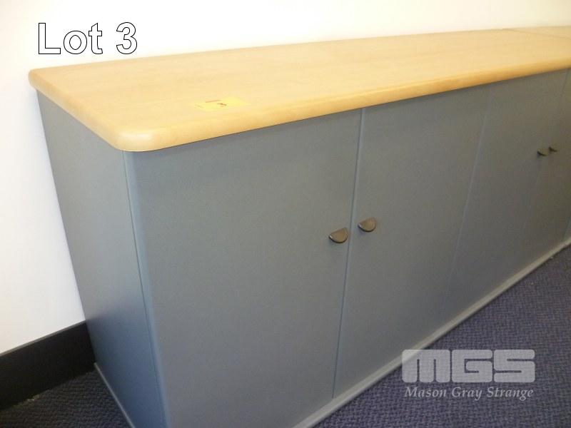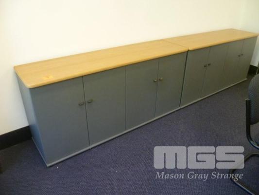 2 x LOWLINE 4 DOOR CUPBOARDS, BEECH / STORM LAMINATE, EACH 165 x 50cm