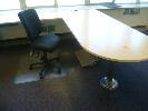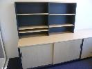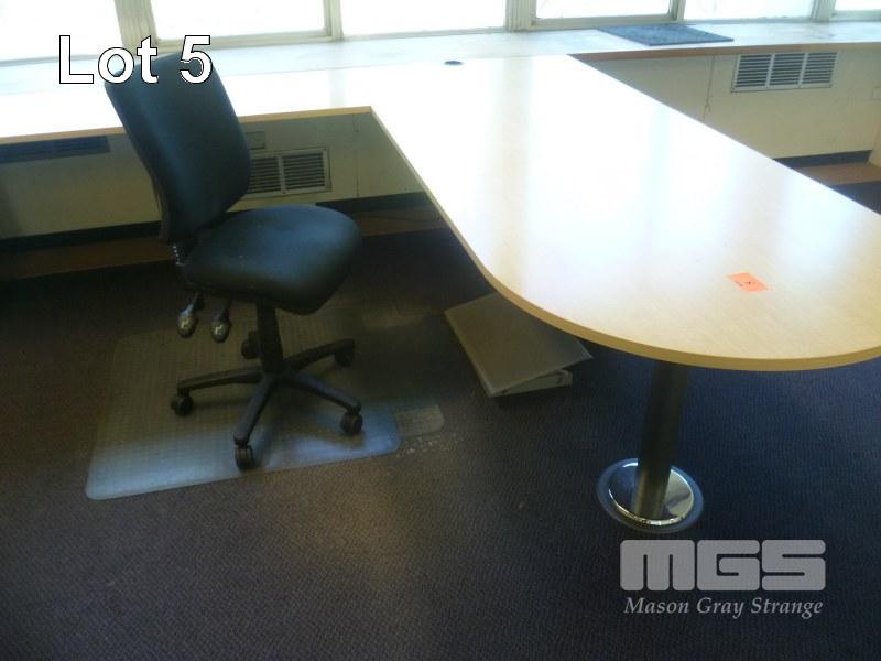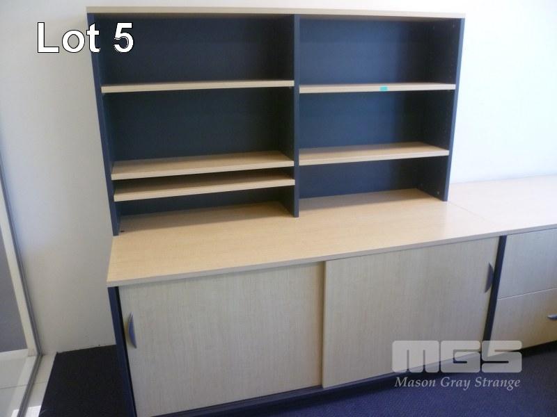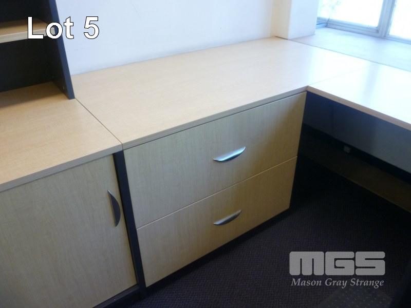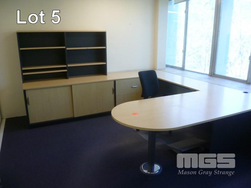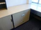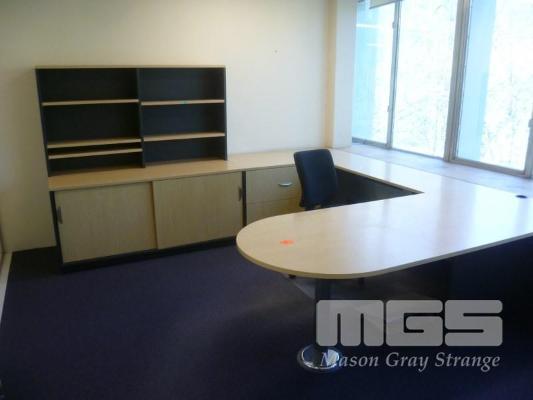EXECUTIVE OFFICE DESK, YOUNG BEECH / STORM LAMINATE, U-SHAPED, 240 x 100cm, 2-DRAWER, WITH COMBINATION CREDENZA / BOOKSHELF UNIT, 180cm, OFFICE CHAIR & FLOOR MAT