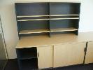 EXECUTIVE OFFICE DESK, YOUNG BEECH / STORM LAMINATE, U-SHAPED, 240 x 100cm, 2-DRAWER, WITH COMBINATION CREDENZA / BOOKSHELF UNIT, 180cm, OFFICE CHAIR & FLOOR MAT (PART OF DESK FIXED TO WALL)