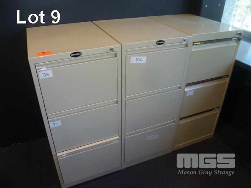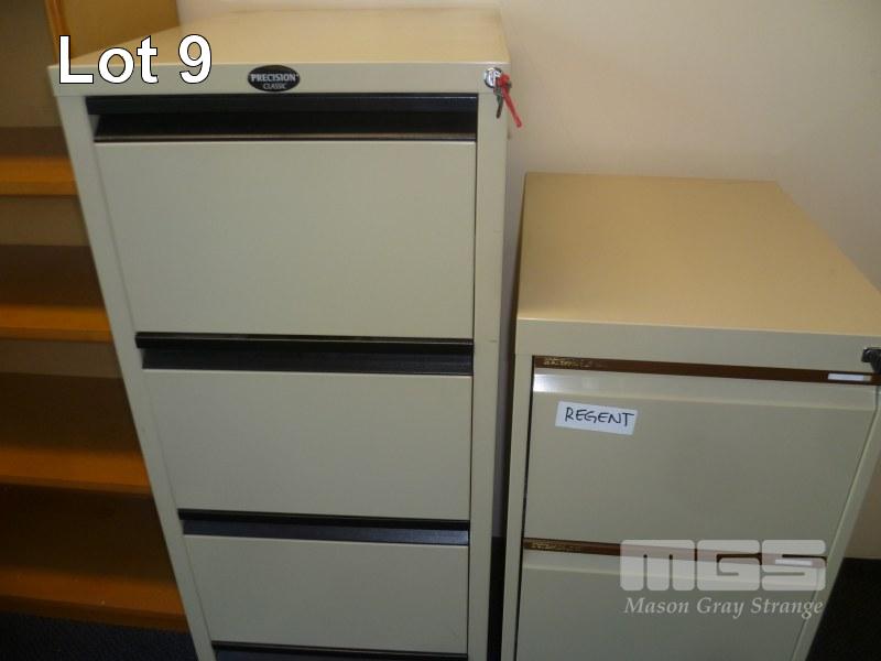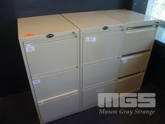 4 x FILING CABINETS, OFFICECO & STATEWIDE, CREAM STEEL, 3-DRAWER WITH KEYS 1 x FILING CABINET, PRECISION, CREAM STEEL, 4-DRAWER WITH KEYS