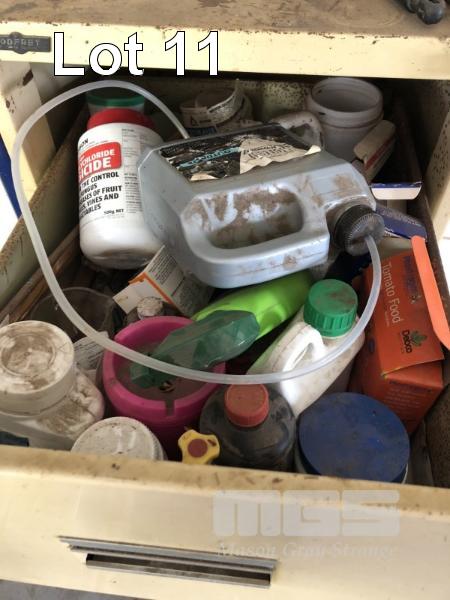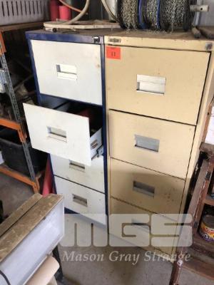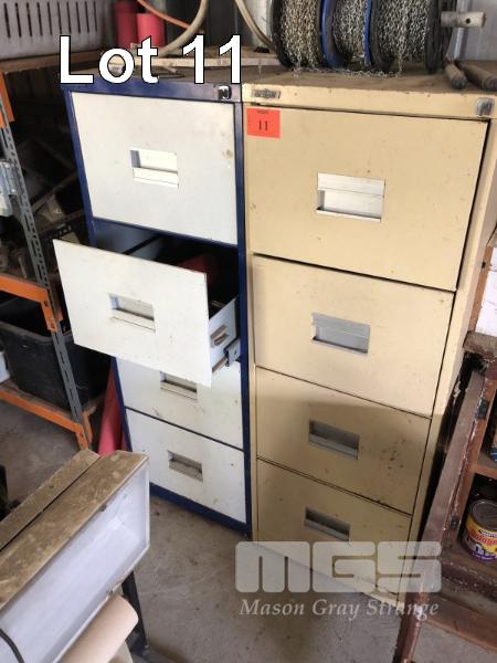 2 x 4 DRAWER STEEL FILING CABINETS & CONTENTS, HERBICIDES, TOOLS ETC