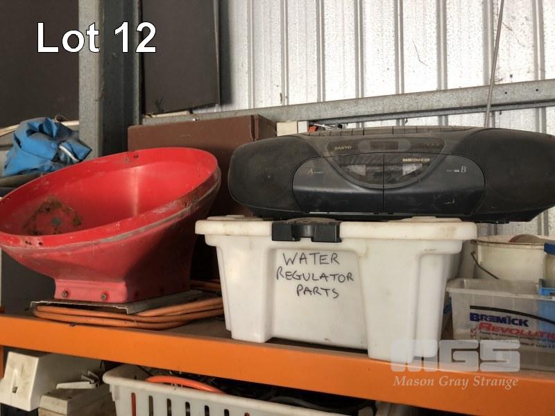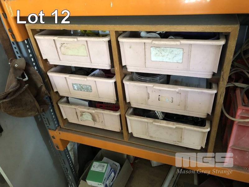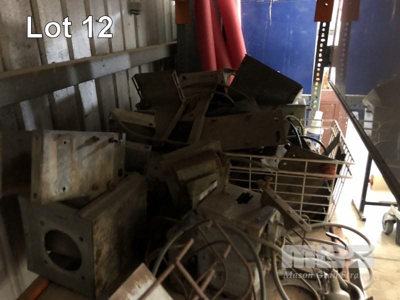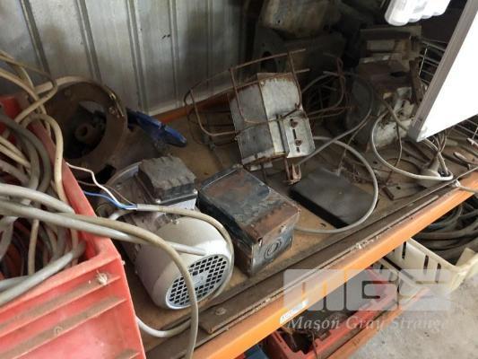 CONTENTS OF RACK, ELECTRIC MOTORS, BELTS, CABLE OFFCUTS, HARDWARE ETC WITH WHITEBOARD