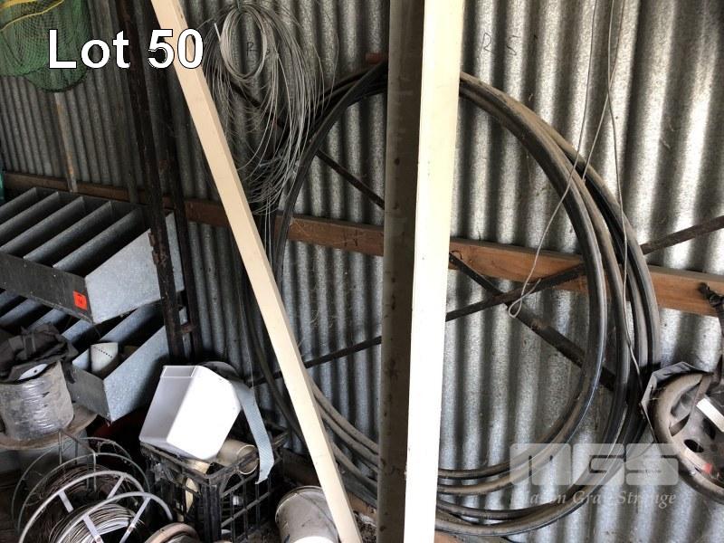 ASSORTED HOSES, WIRE, PART ROLL GALV CABLE