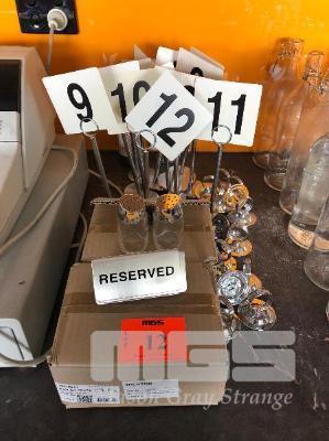 50 x SALT & PEPPER SHAKERS, GLASS & CHROME WITH TABLE NUMBERS
