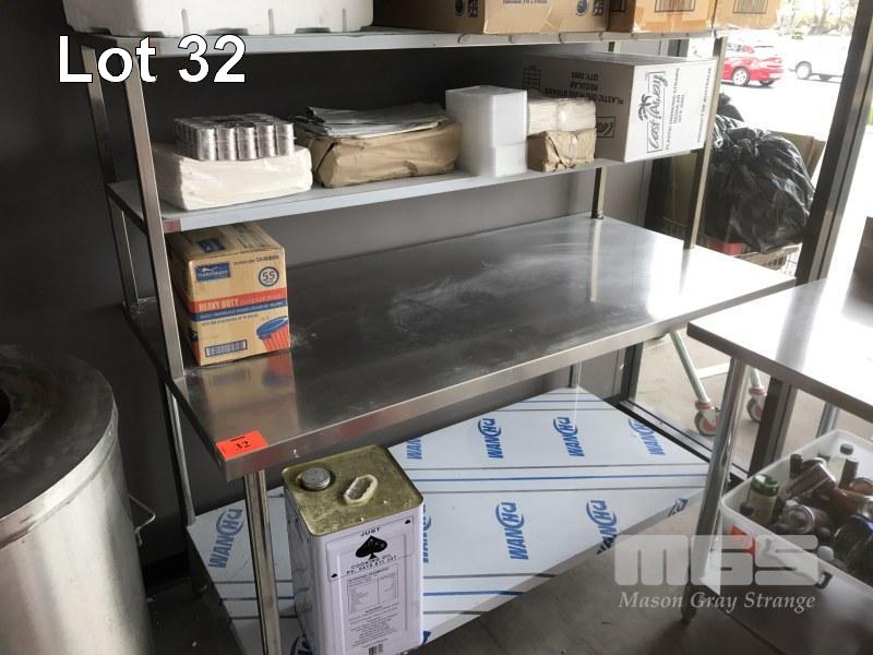 CHEFS BENCH, WITH OVERHEAD TWIN SHELVES, 1500 x 900mm WITH UNDERBENCH SHELF (AS NEW)
