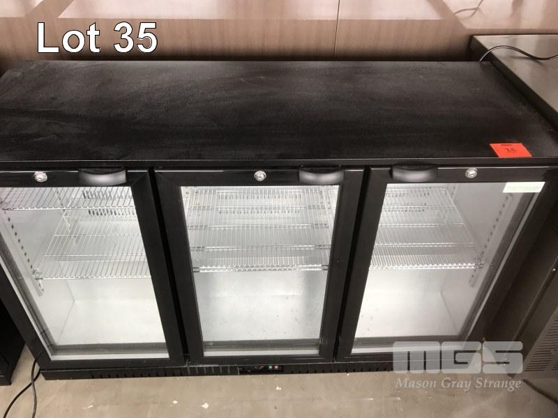 DISPLAY FRIDGE, 1350 x 500 x 800mm MOD: THERMASTER BLACK, 3 x GLASS DOORS, TEMPERATE