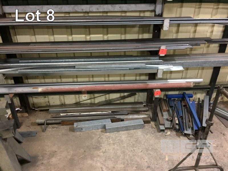 CONTENTS 2 TIERS OF RACK & OFF CUT STEEL ON FLOOR GALV RHS, ALLOY TUBE ETC